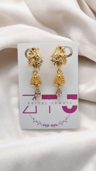 Exquisite Gold Plated Jhumka Earrings – Featuring Dazzling Zircon Stones Elevate your look with these stunning, traditional-style gold plated Jhumka earrings from Zartaj Jewels. Perfect for weddings, formal events, or adding an elegant touch to your daily wear, these earrings capture the essence of classic Pakistani and Indian jewelry design. The intricate, bell-shaped Jhumka […]